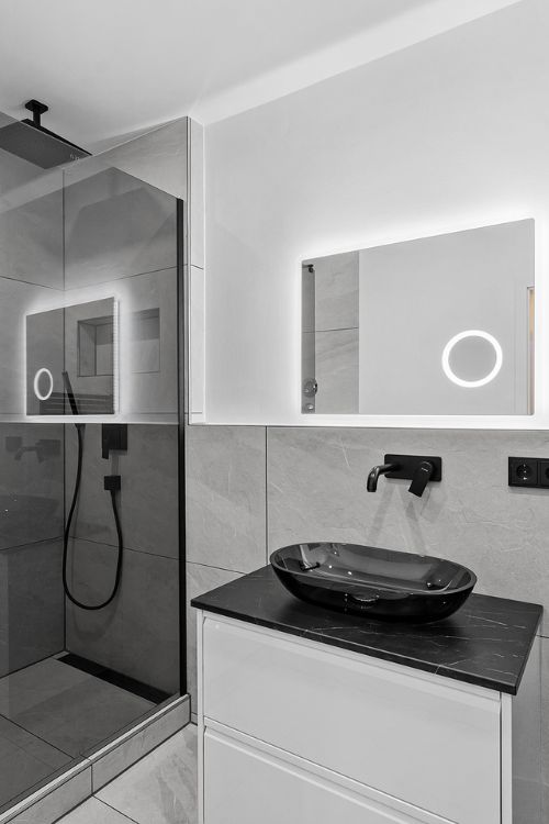 Moderne großformatige Fliesen, Unterputz-Armaturen