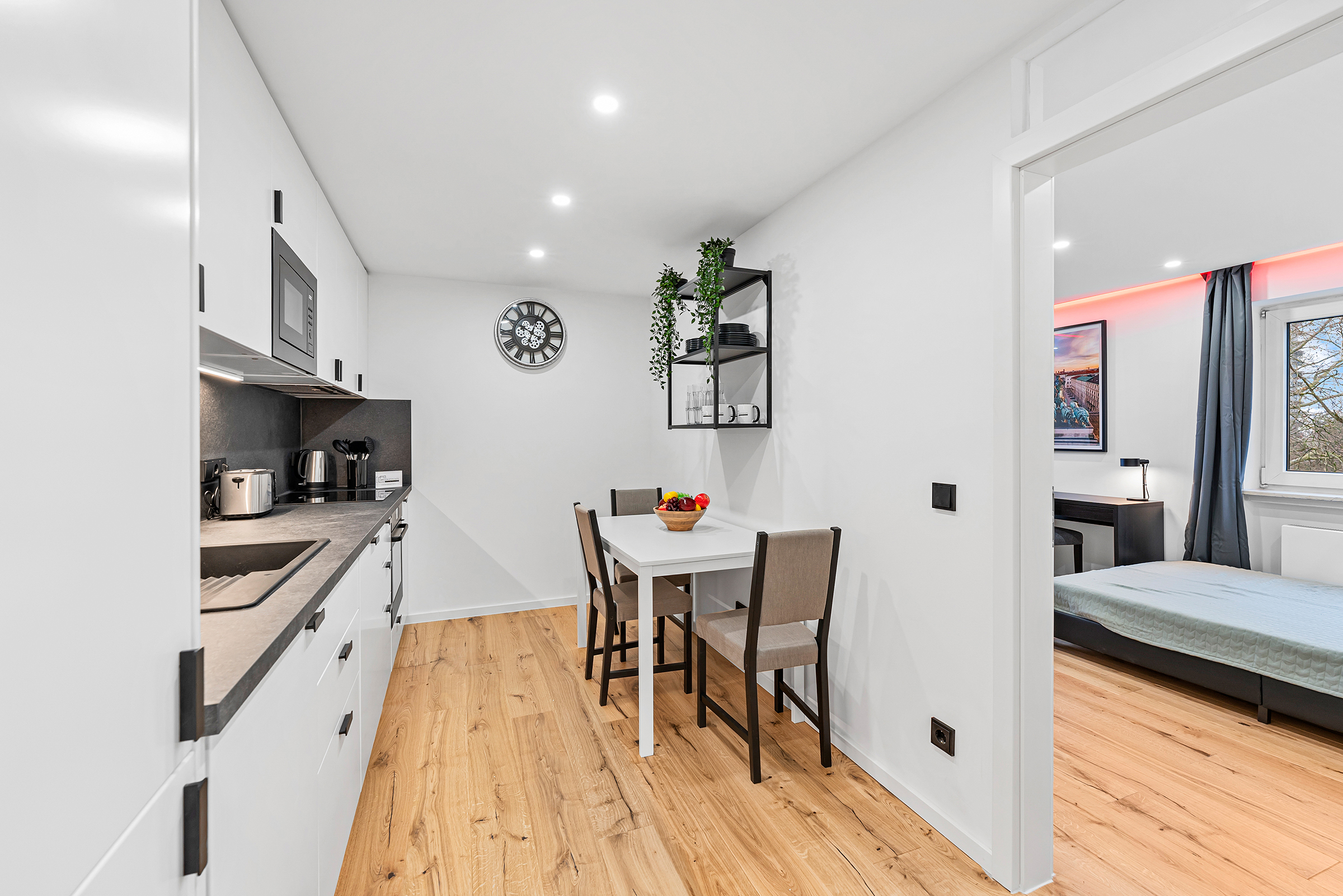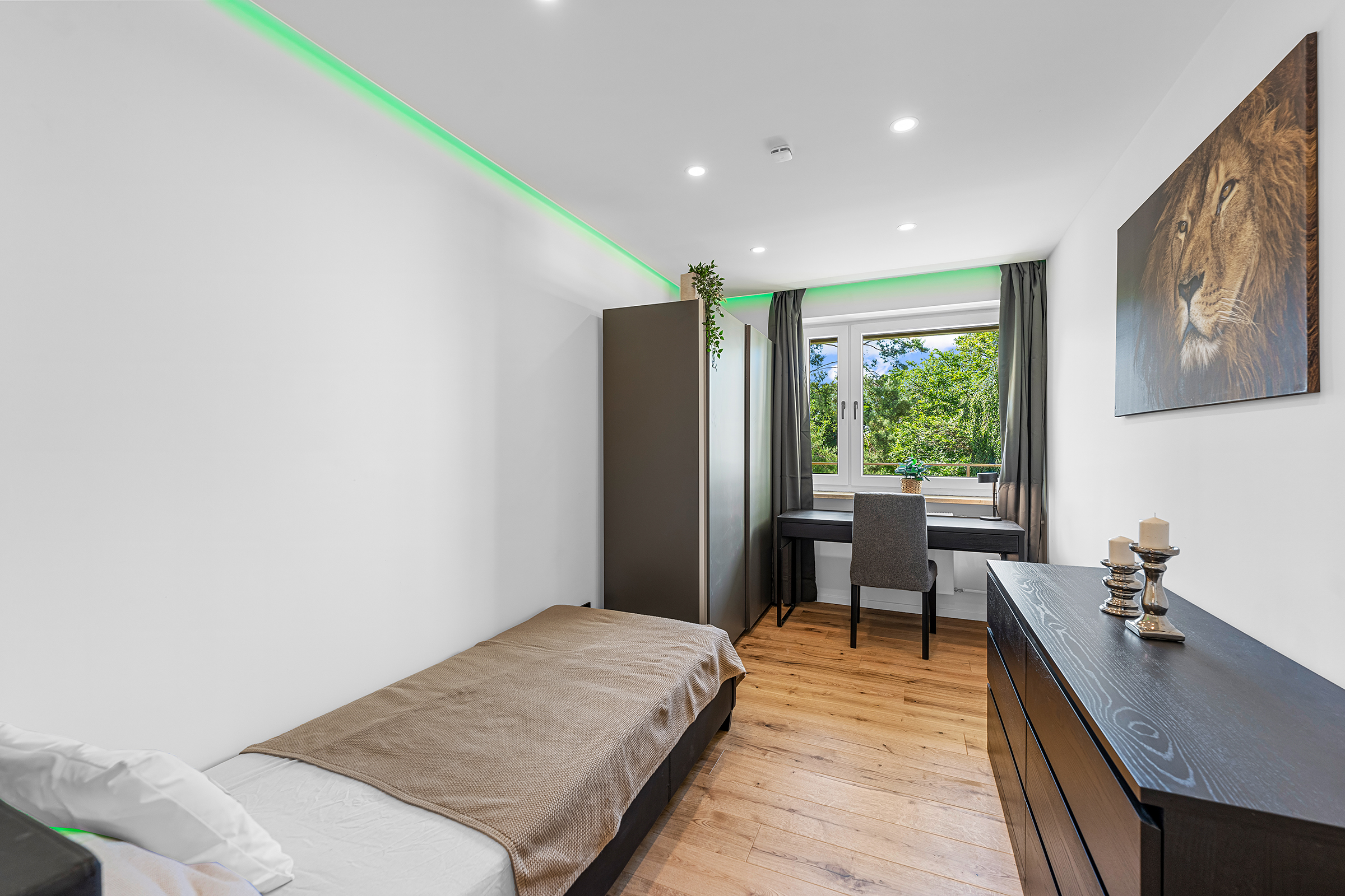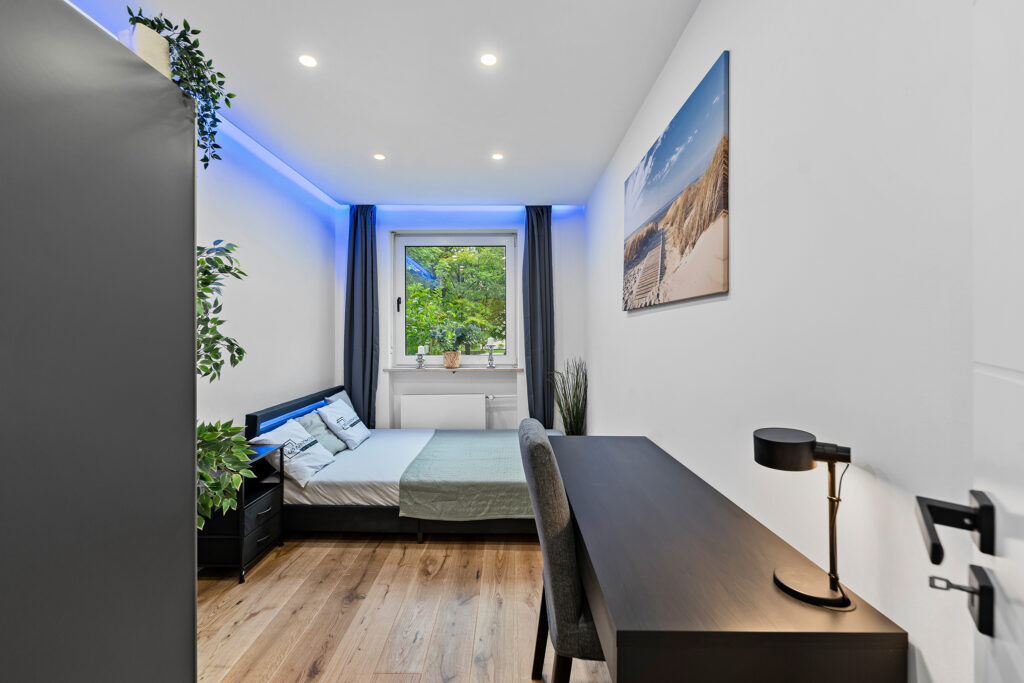 Alle Immobilien werden als hochwertiges Co-Living-Wohnkonzept realisiert und vollständig möbliert vermietet. Die aufwendige Sanierung sorgt für ein Wohngefühl, das sofort überzeugt: verklebtes Parkett mit warmer Anmutung, fein abgestimmte Lichtkonzepte mit LED-Spots und Schattenfugen, moderne Bäder mit großformatigen Fliesen und integrierten Ablagen sowie stilvoll ausgestattete Küchen. Das Ergebnis sind durchdachte, zeitgemäße Wohnräume mit hohem Anspruch.